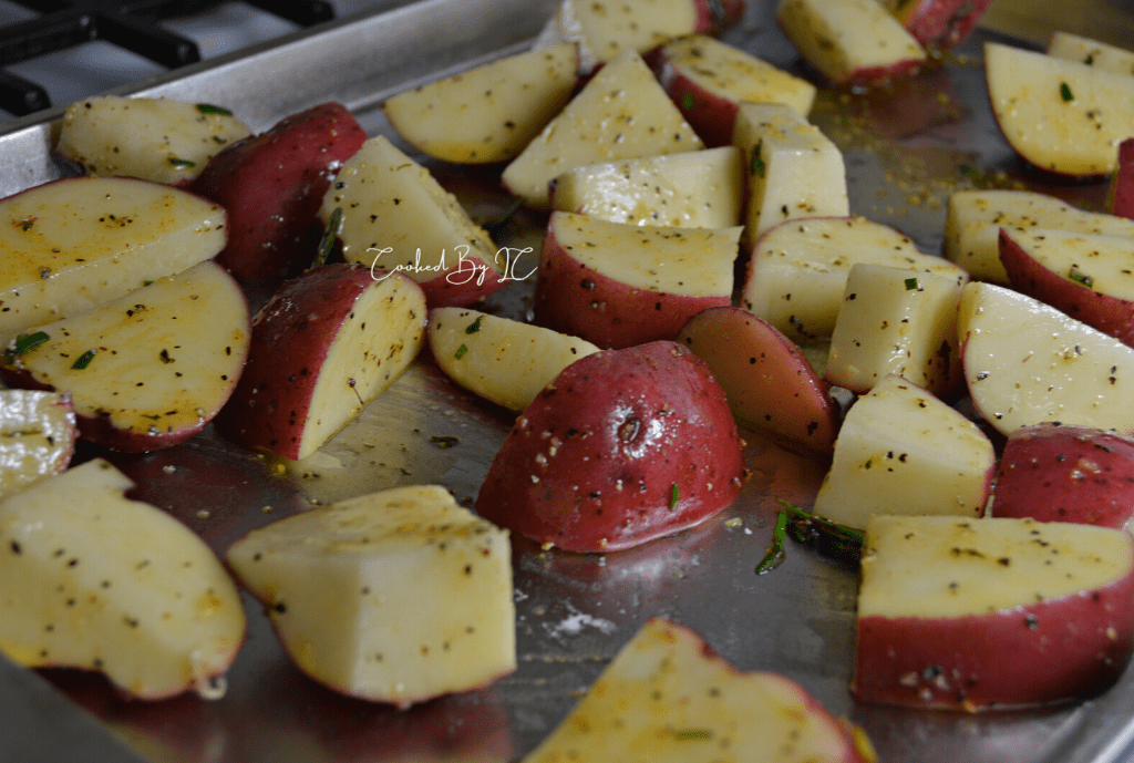 Step 4: Place potatoes on a sheet pan and place in the oven for 40-45 minutes.